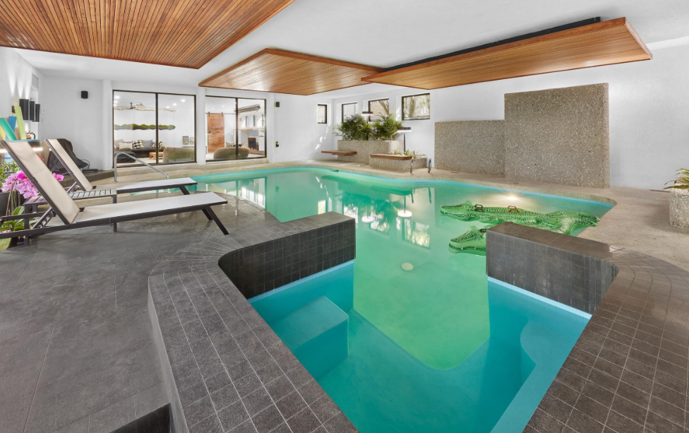 12511 Grand View Drive NW: Arguably the coolest house on this list, you really have to click through to the listing photos to see what we mean! An unusual exterior design is matched by modernist moments inside the house, such as the open-concept living-kitchen-dining area with palm trees growing into a huge skylight. And check out the above, somewhat retro-style, indoor pool space! We feel like this home is giving hints of Frank Lloyd Wright.