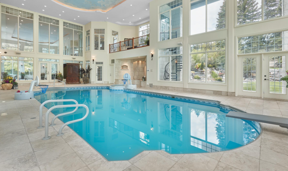 16 Wedgewood Crescent NW: We probably shouldn’t have favourite listings, but if we did, one of them would have to be this stunning home. Just look at that double-height, orangery-style indoor pool! The rest of the house is just as luxurious as this space (check out the movie theatre), and there’s gorgeous landscaping in the gardens.