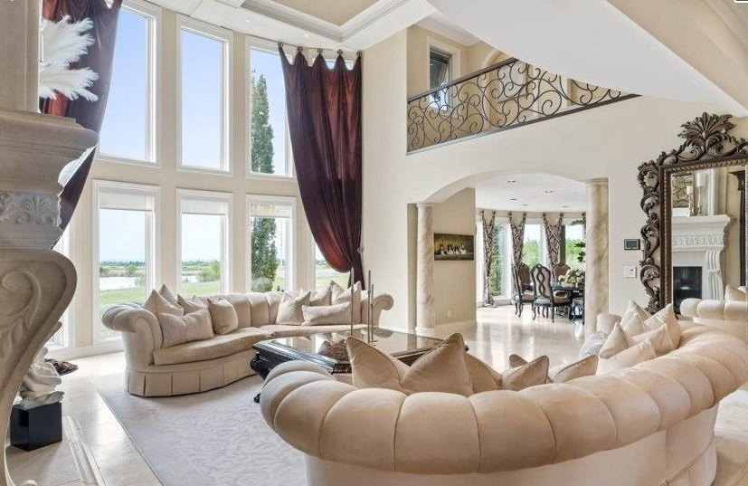 484 Range Road 233 #52304: By far the biggest house on this list, it’s also the most rural, being located in Rural Strathcona County (still part of the Edmonton Metropolitan Region). This ultra-ornate home is brimming with fancy details and architectural moments, including this formal sitting room with vast ceiling heights. There’s also a movie theatre, huge rec room, wine room and bar, and the land leads down to a small lake.