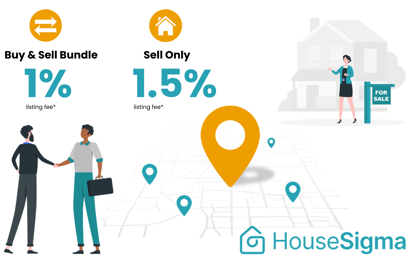 *1% listing fee only applicable when your home is listed over $699,995. The listing agreement signing and home purchase closing dates must be within six months of each other. If you list and sell before buying, a 1.5% listing fee will apply. The 0.5% bundle saving is issued as a rebate after the closing of your subsequent home purchase with a HouseSigma agent. Speak to your HouseSigma agent for more details.
