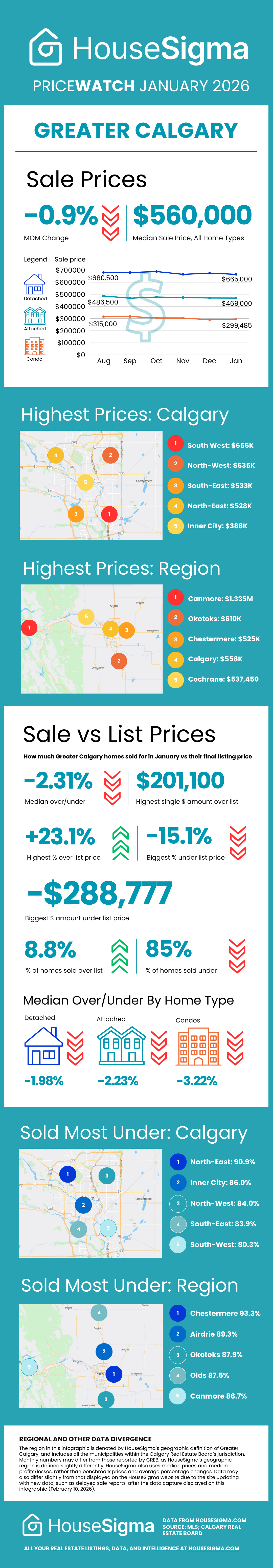 Check out the overall Greater Calgary January PriceWatch infographic below for more details on home prices and regional breakdowns.