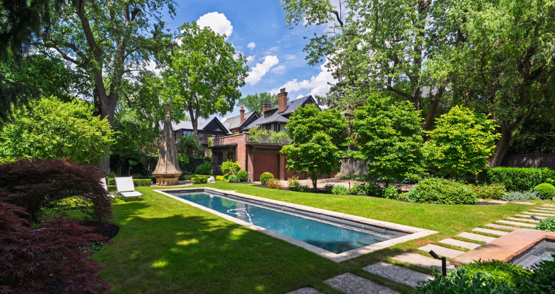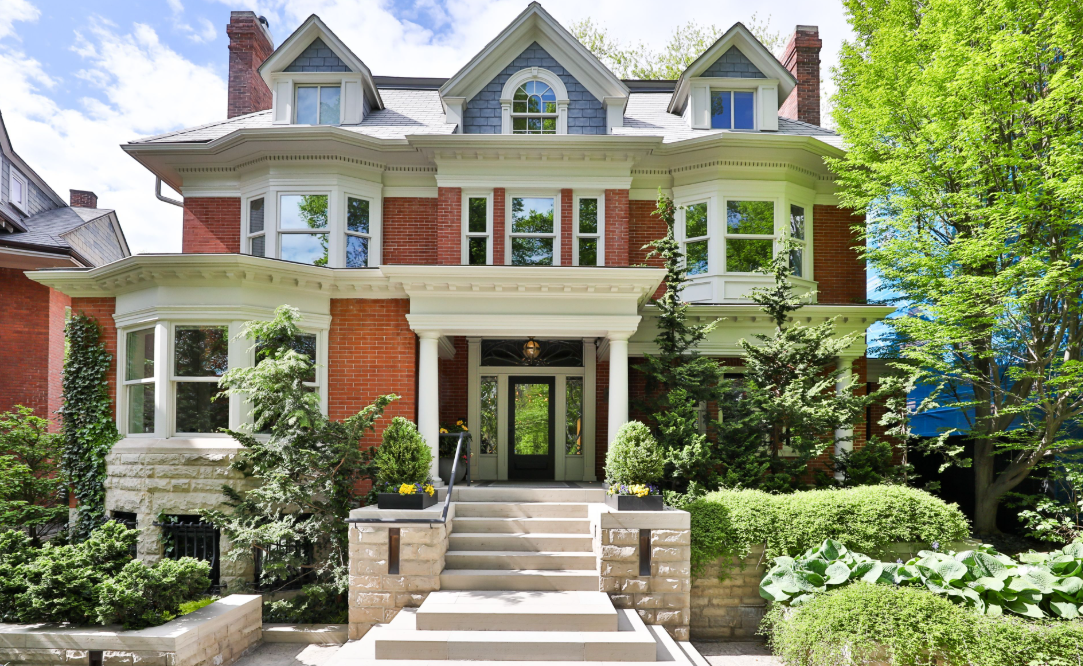 20 Elm Avenue, Toronto: This is a real Rosedale gem – an elegant home from 1890 that has been meticulously restored to state-of-the-art standards. The 135-year-old home offers over 11,500 square feet of living space across four levels, with original architectural details including hand-carved moldings, eight fireplaces, and a dramatic entrance foyer, plus they have installed a four-floor elevator. Outside it has one-third of an acre of gardens, including a terraces, patios, a shaded pool, and mature trees.