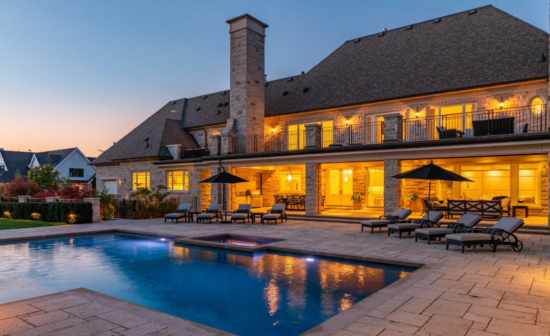 4472 Escarpment Drive, Burlington: Located in enclave of The Bluffs in Burlington near the Bruce Trail, this custom-built family home sits on two acres of land. The home offers 15,000 square feet of living space, with seven bedrooms, 11 bathrooms, an elevator, a movie theatre, a spectacular two-storey gourmet kitchen, and an expansive outdoor pool area.
